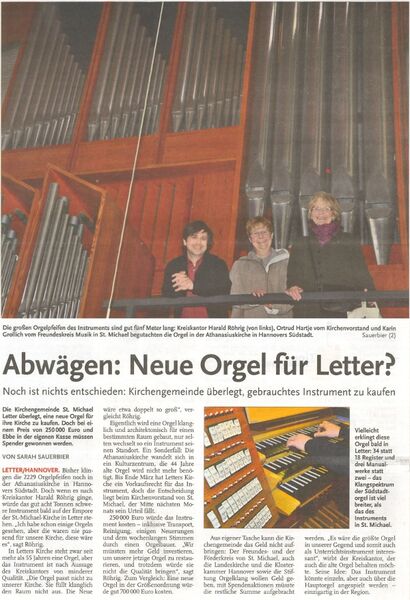 Den Text der Pressemitteilung der EKD zur Wahl des letterschen Projekts zur „Orgel des Monats“ können Sie auf den Internetseiten der Evangelischen Kirche in Deutschland (EKD) nachlesen.