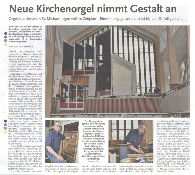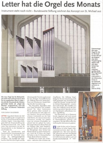 Und der Einsatz hat sich gelohnt: unser Projekt wurde Ende 2013 als Orgel des Monats Oktober der Stiftung Orgelklang ausgezeichnet!