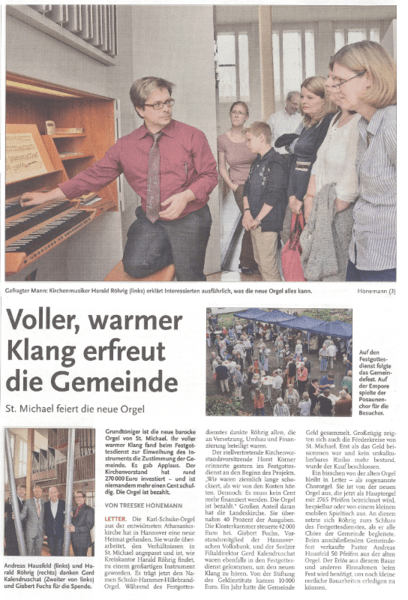 Dass die bundesweit fördernde Stiftung unser Projekt überhaupt finanziell unterstützte, ist bereits als Bestätigung des künstlerischen und handwerklichen Gesamtkonzepts zu verstehen, unterstützt die Stiftung Orgelklang in erster Linie doch denkmalgeschützte Orgeln. Die Qualität der angekauften Karl-Schuke-Orgel und das überzeugende Versetzungskonzept, das wir in Zusammenarbeit mit Fachleuten entwickelt hatten, hat die strengen Auswahlkriterien der Stiftung dennoch bestanden und nun sogar zu der Auszeichnung „Orgel des Monats“ geführt.