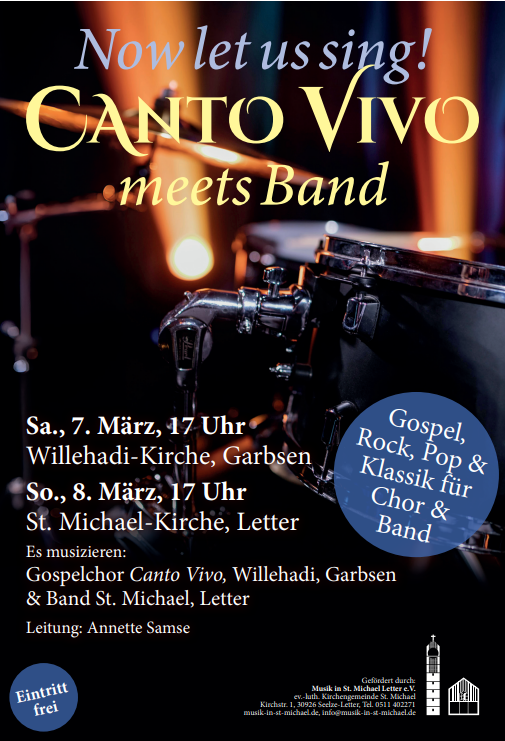 Nach dem großen Erfolg von „Canto Vivo meets Band“ im letzten Jahr, gibt es auch im neuen Jahr wieder Gospel, Rock & Pop und auch Klassisches für Chor und Band zu hören.